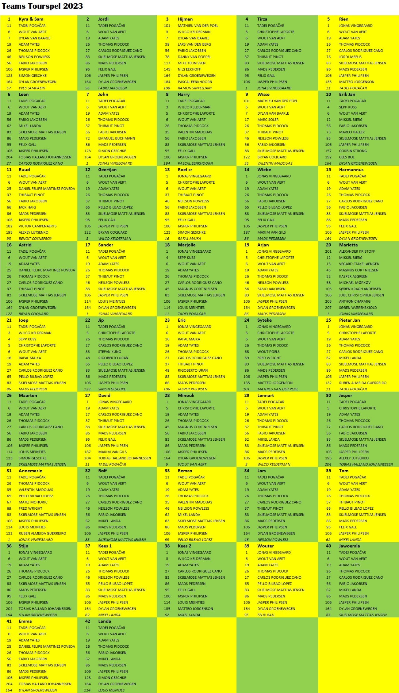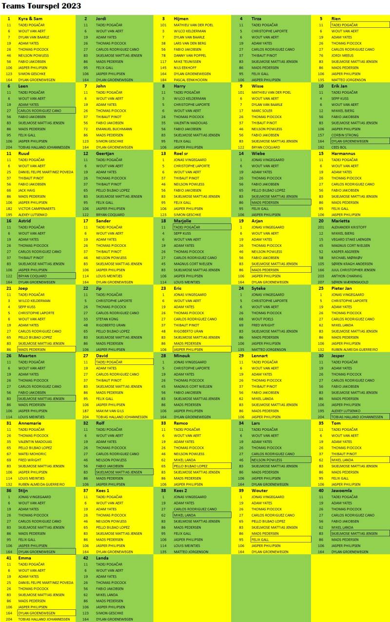 Teams 2023 (inclusief nog in te zetten reserverenner):