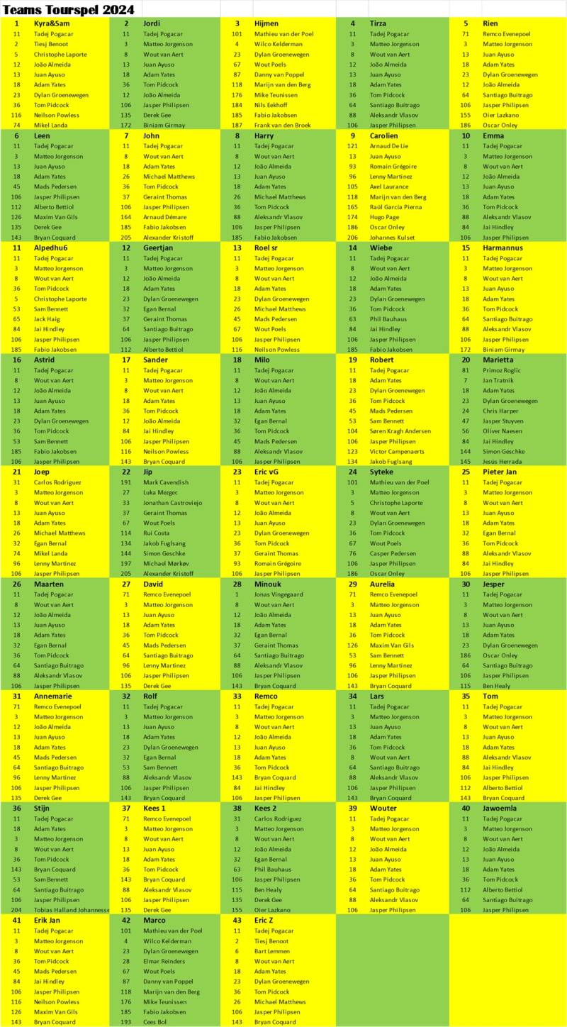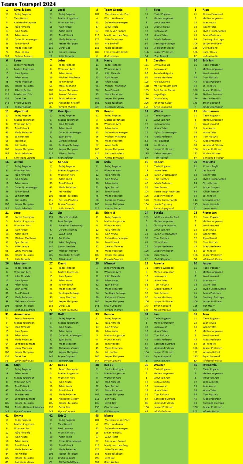 Teams 2024 (inclusief nog in te zetten reserverenner):