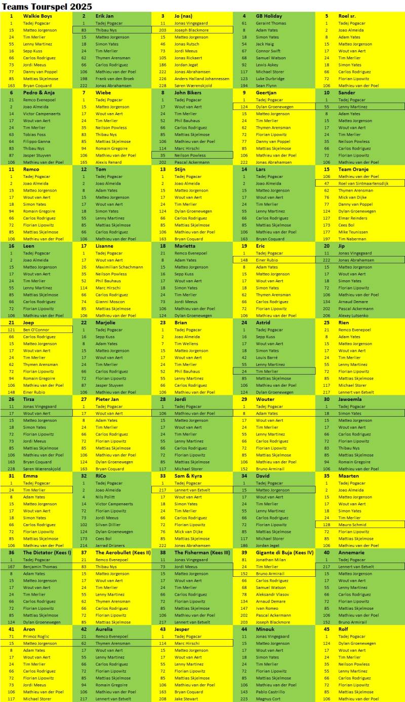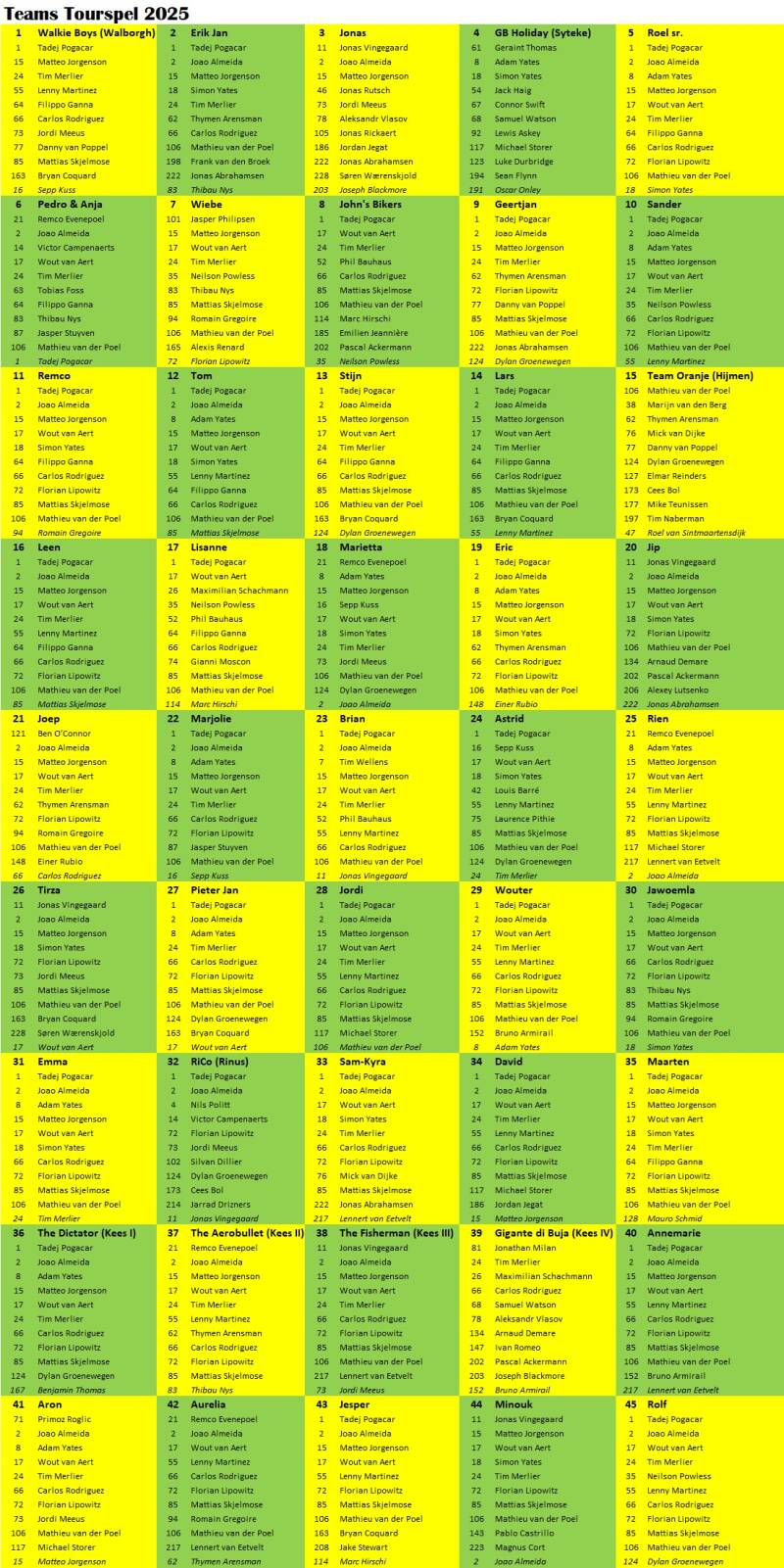 Teams 2025 (inclusief reserverenners):